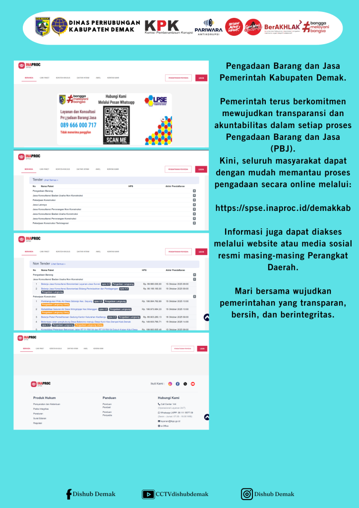 Kini, seluruh masyarakat dapat dengan mudah memantau proses pengadaan secara online melalui:
