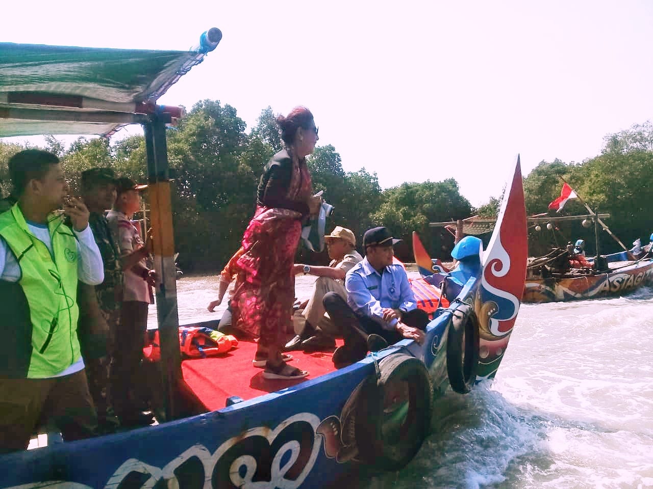 Menteri KKP mengikuti acara sedekah laut di dan naik di atas perahu nelayan