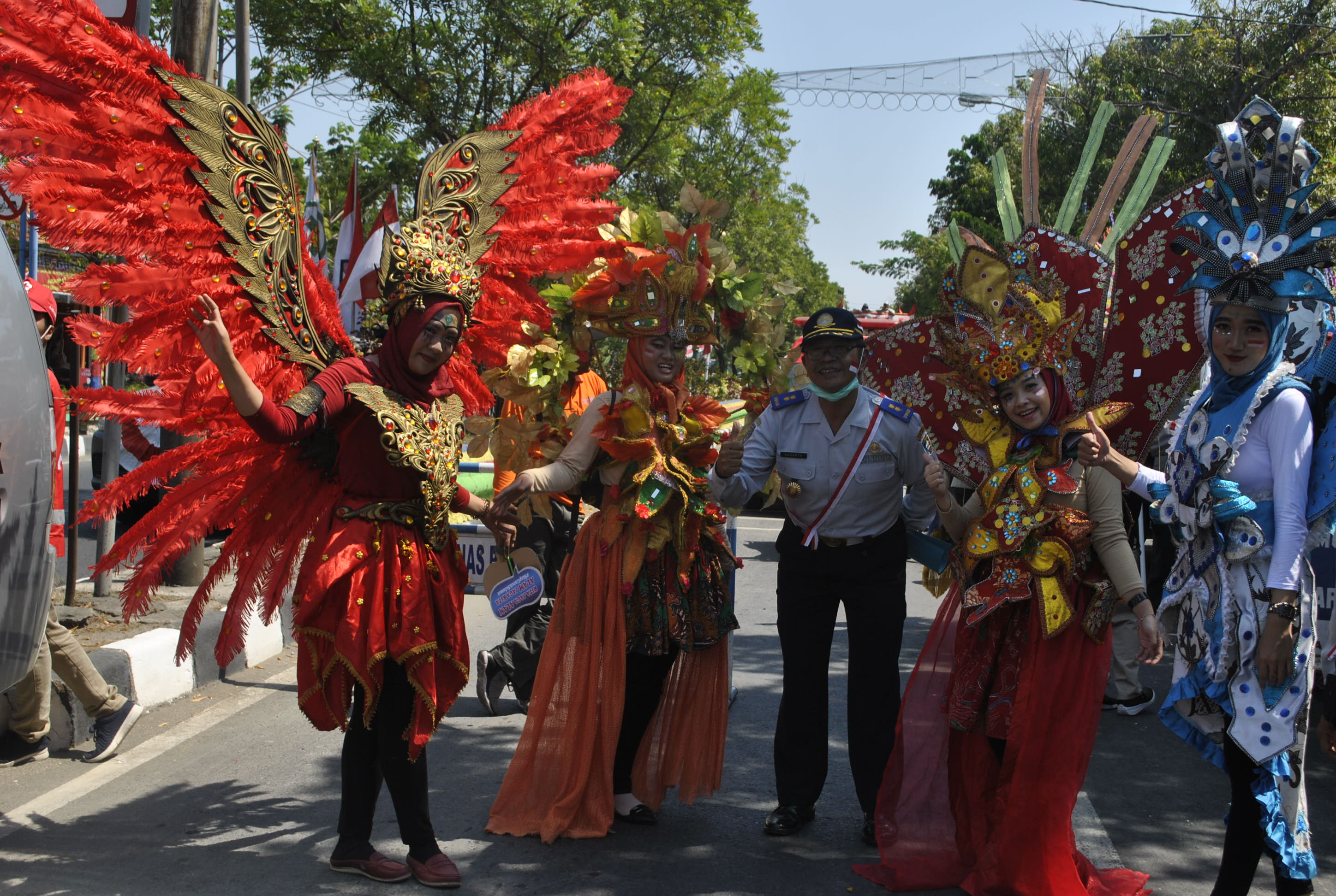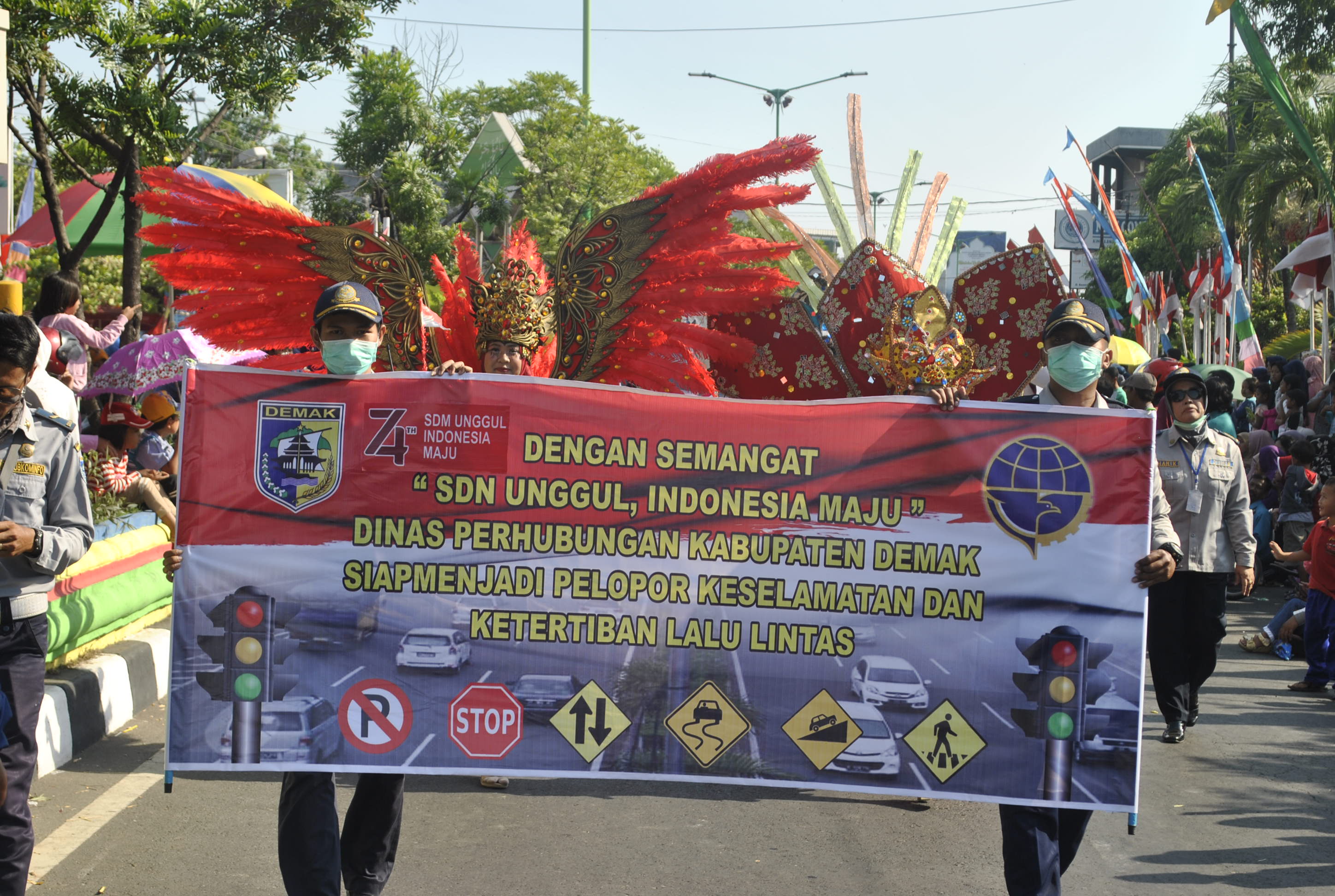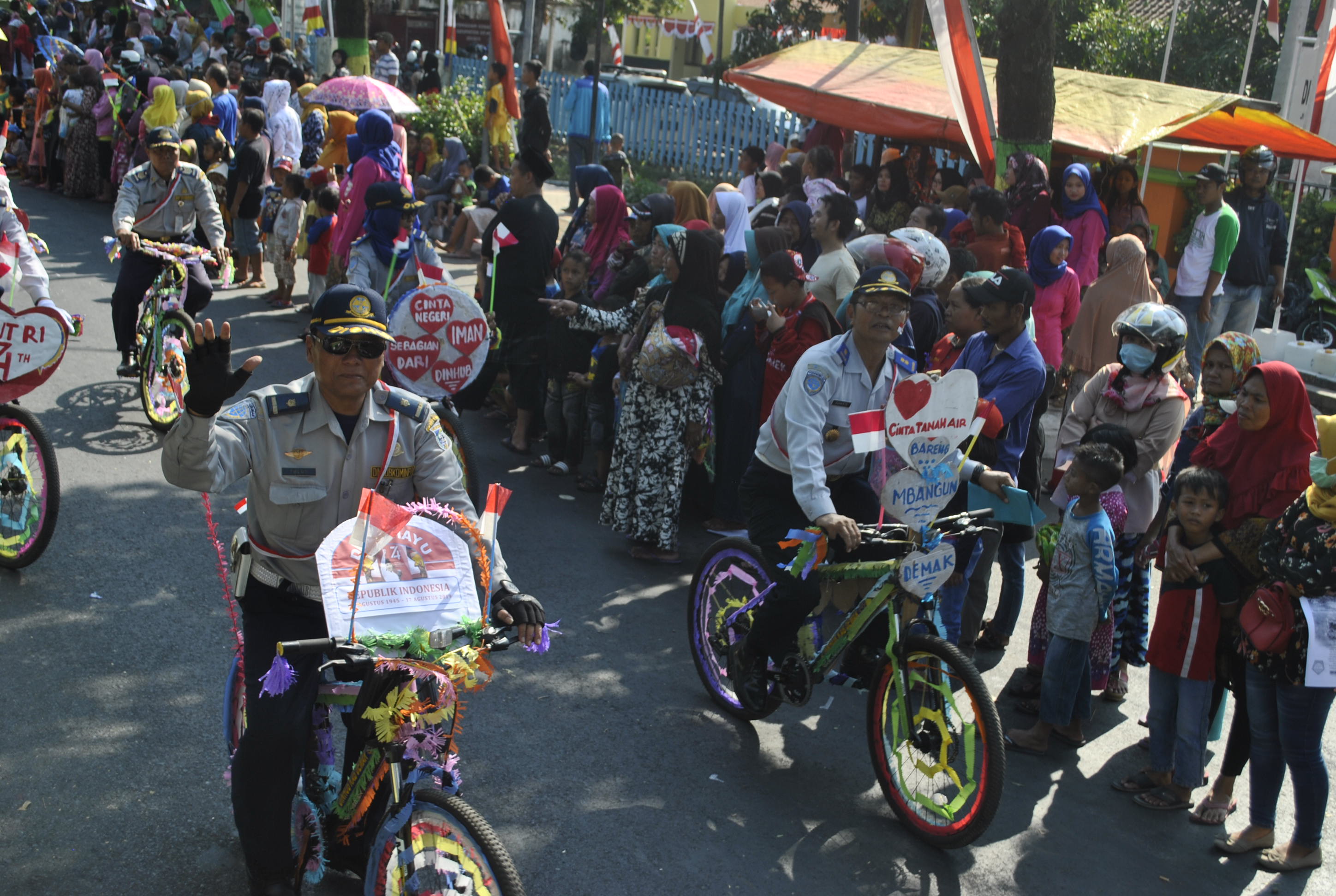 Dinas Perhubungan menampilkan kostum hias dan sepeda hias yang banyak menarik perhatian ribuan penonton yang memadati sepanjang jalan dari terminal bintoro sampai jalan bhayangkara