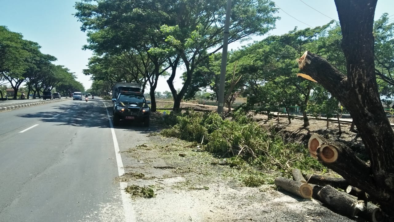 Selain itu juga, penebangan pohon yang terindikasi rawan tumbang atau pohon tua di jalan pantura demak – kudus.