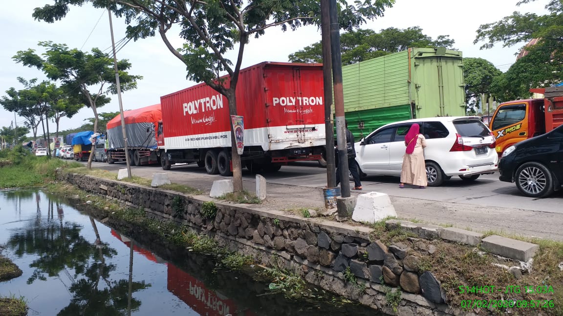 Terjadi Kecelakaan sebuah kontainer glempang di depan PT Varia Beton Sayung yg diduga Supir truk mengantuk di ruas jalan Demak – Semarang.(Jumat pagi, 07/2/20).