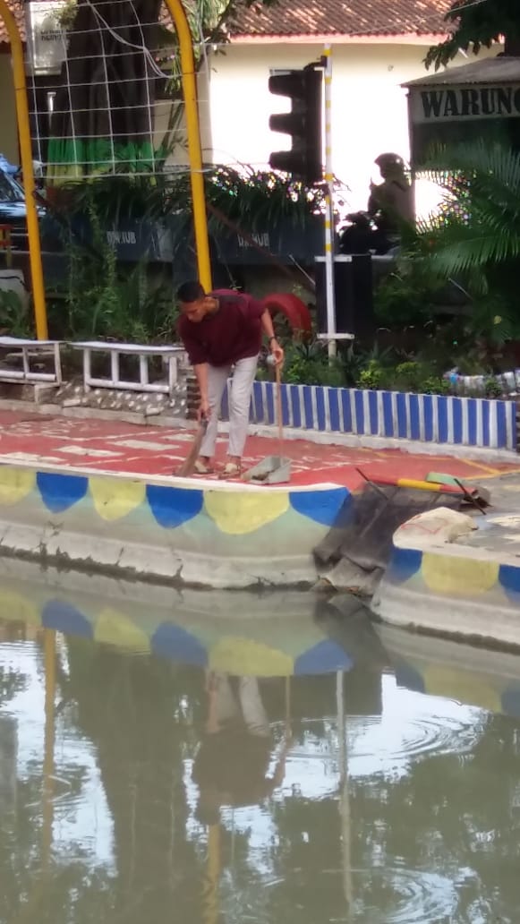 Petugas Dishub melaksanakan giat piket bersihkan taman kali tuntang pagi pukul 07.00 WIB di area taman dinhub. Demak(10/3/2020)