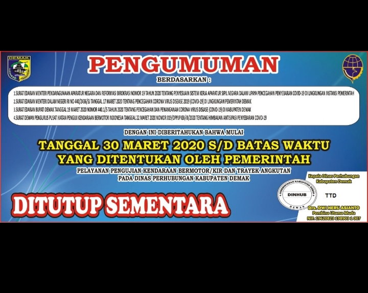 Hari minggu(29/3/2020) rombongan dari pondok pesantren di Kab.Rembang telah tiba di Kab. Demak dan diperiksa langsung sore ini pukul 15.00 WIB oleh pihak Dinas Kesehatan Kab. Demak di Gedung Koni Demak yang di didampingi langsung oleh bupati dan wakil bupati Demak. Continue reading “ROMBONGAN PONPES REMBANG TIBA DI DEMAK DAN DIPERIKSA KESEHATANNYA”