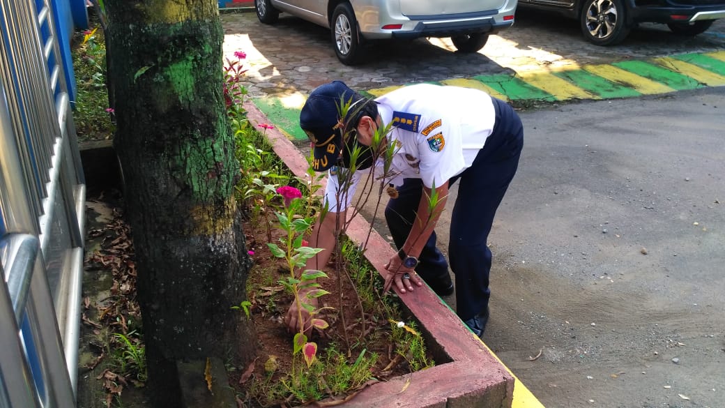 Setelah Melaksanakan Giat Apel pagi seluruh personil melaksanakan kegiatan 5 menit pungut sampah di halaman kantor Dinas Perhubungan guna menciptakan lingkungan yang bersih, nyaman dan rindang.