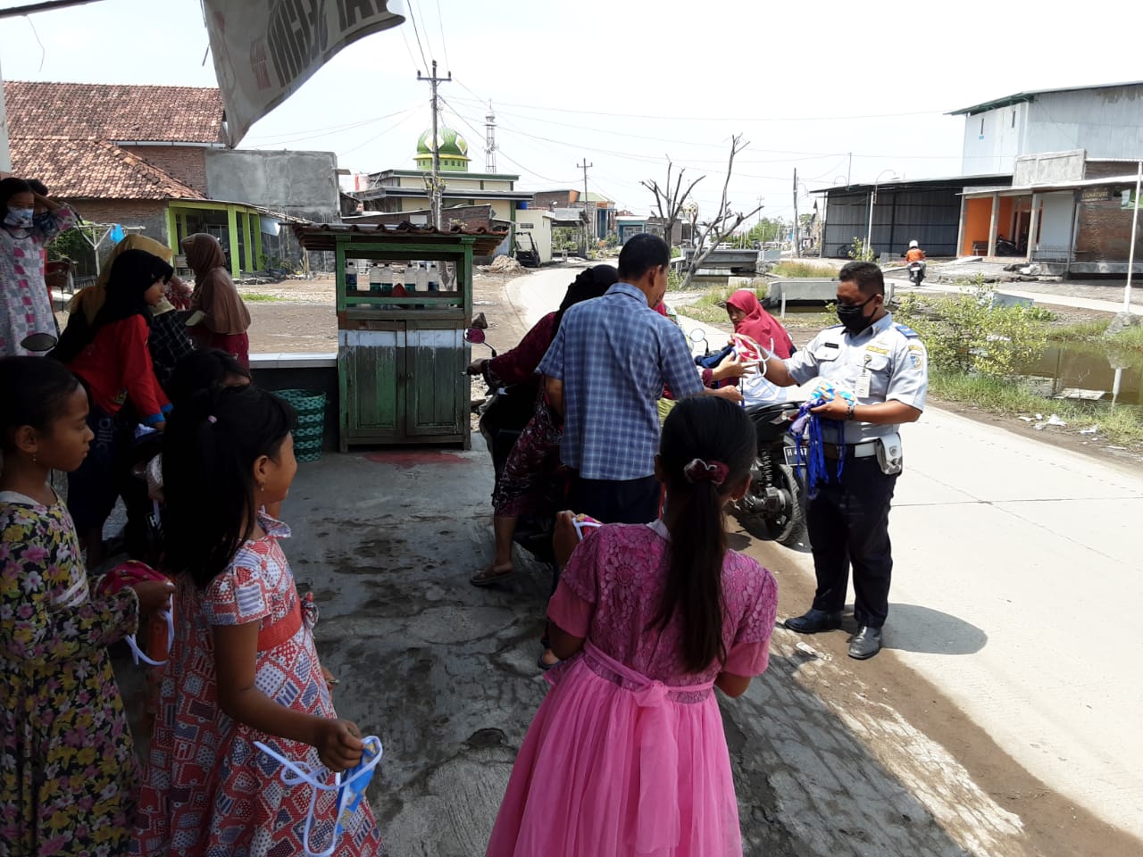 Pembagian masker tersebut dilakukan kepada masyarakat di Desa Tugu Kec. Sayung Demak pada Hari Kamis 16 April 2020.