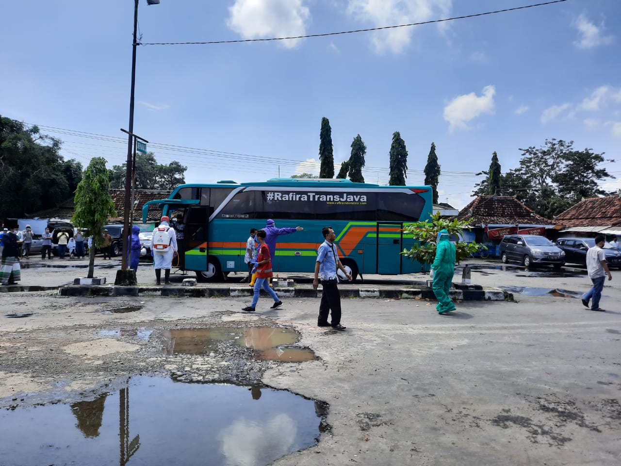 Hari Rabu (22/4/2020) rombongan santri dari pondok pesantren Tegalrejo Magelang telah tiba di Terminal Bintoro pukul 11.00 Wib dan diperiksa langsung oleh pihak Dinas Kesehatan Kab. Demak di Posko Penanggulangan Covid -19 Kab. Demak.