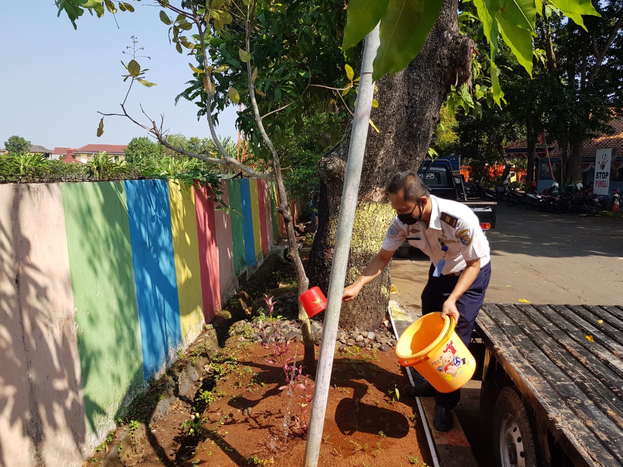 Personil Dinas Perhubungan Kab Demak melaksanakan giat penyiraman tanaman di lingkungan kantor sebeagai bentuk kepedulian terhadap lingkungan yang bersih, Selasa (21/7/2020).