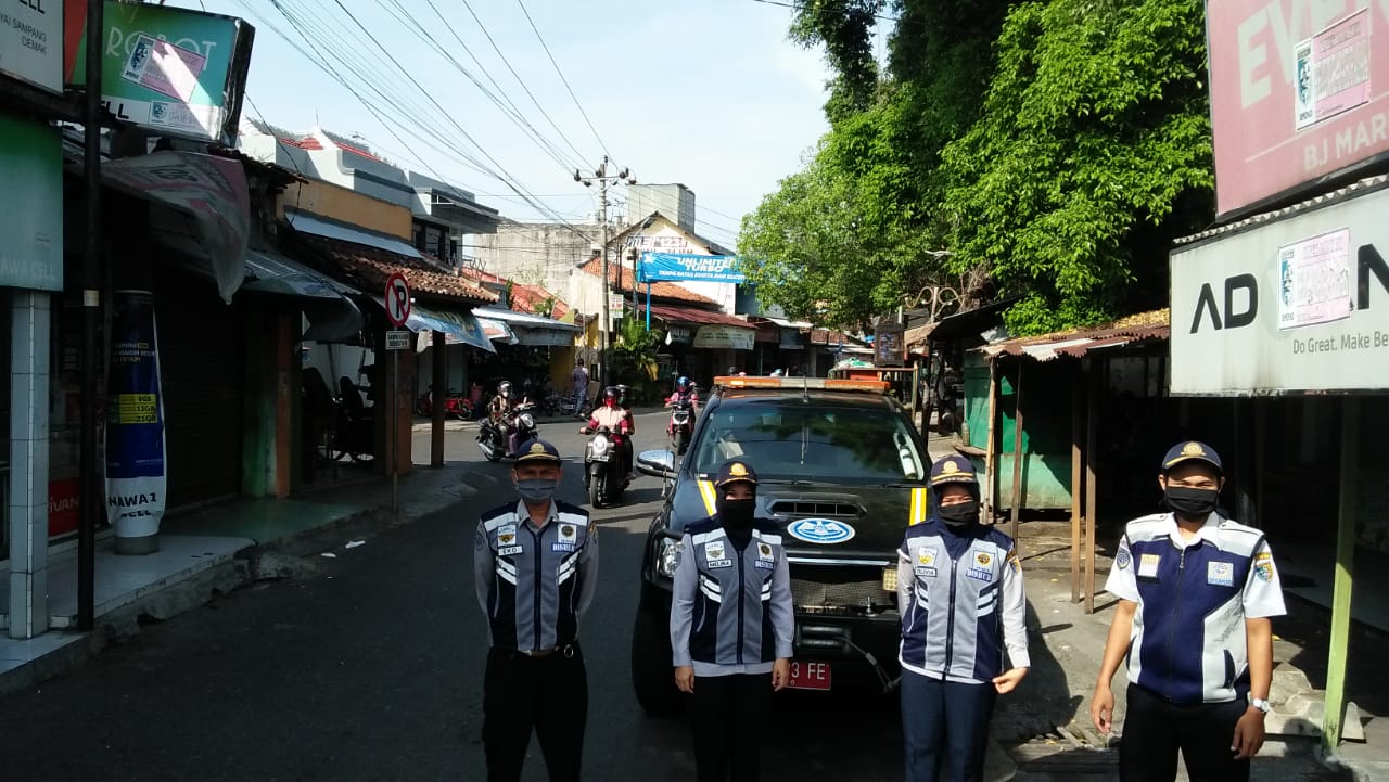 Petugas Dinas Perhubungan Kab. demak melaksanakan giat pengawasan dan pengendalian Jalur Sistem Satu Arah di kawasan Sampangan Demak, (Jum’at 24/7/20).