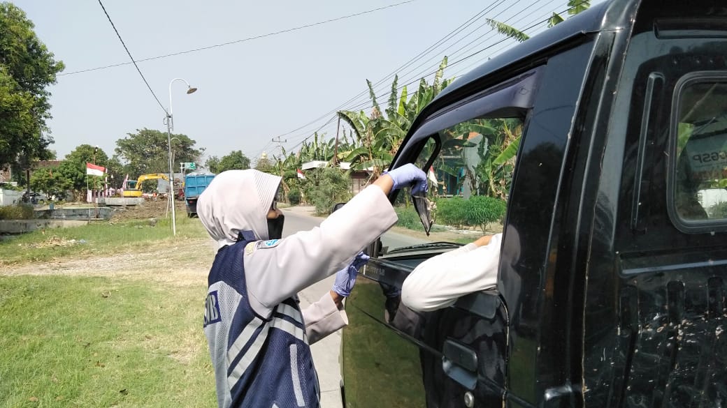 Dinas Perhubungan Kab.Demak menggelar giat protokol kesehatan di Kec.Karangawen dan sekitarnya (Jumat, 7 Agustus 2020)