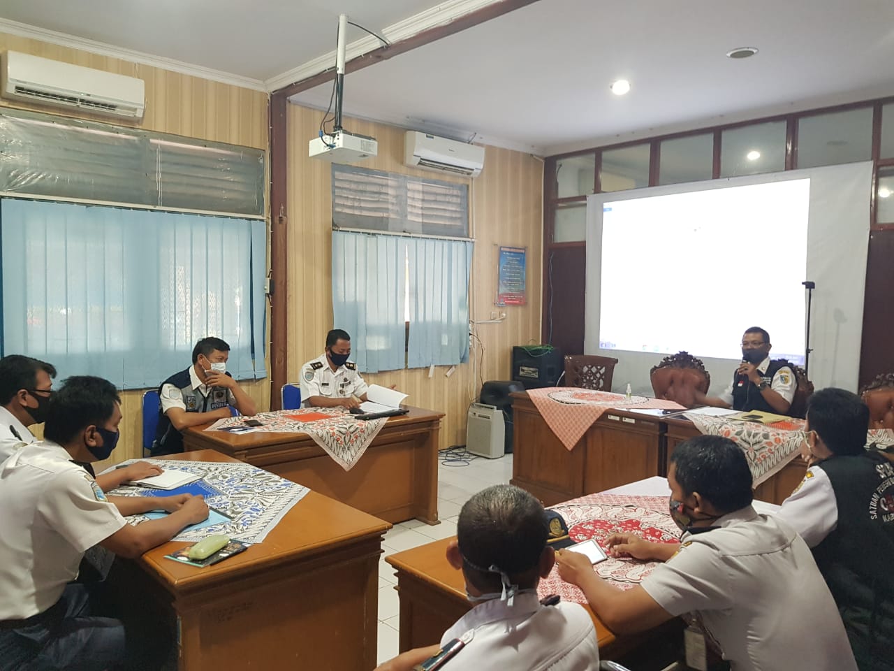 Petugas Dinas perhubungan kab. demak dengan antusias dan semangat memberikan arahan dan bimbingan kepada mahasiswa yang akan melaksanakan penelitian di Dinas perhubungan kab. demak, (Senin, 10/8/20).