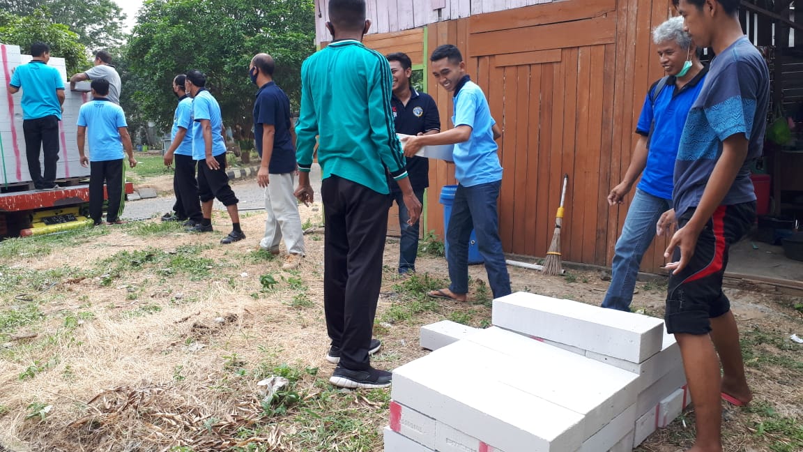 Perwakilan dari PT. NBI akan  menyerahkan bantuan kepada Dinas Perhubungan kab. demakdalam mpembangunan mushola di sebalah gedung pengujian PKB, Senin,(03/8/20).