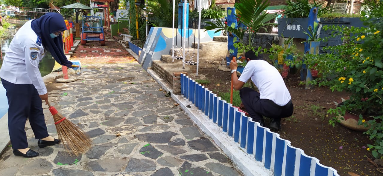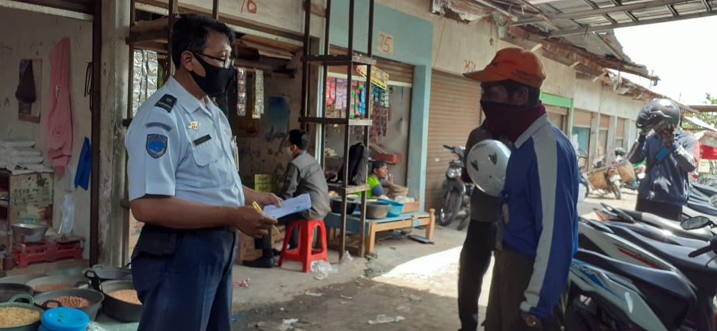 Petugas Dinas Perhubungan Kota Palangka Raya melaksanakan moitoring dan evaluasi kepada juru parkir di kawasan Pasar Karangawen, Senin 28/9 /2020.