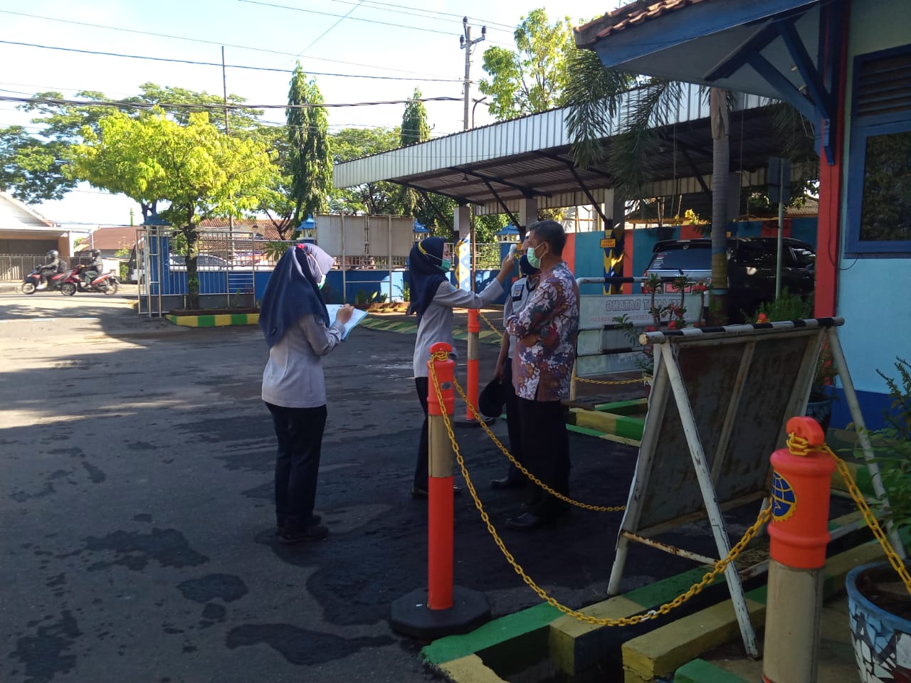 Ada yang berbeda pada apel di halaman Kantor Dinhub Demak Dalam Penanganan Penyebaran Virus (Covid-19), pada saat apel setiap harinya dilakukan pengukuran suhu tubuh kepada personel yang akan melaksanakan tugas dan pemberlakuan Sosial/physical Distancing pada saat apel.