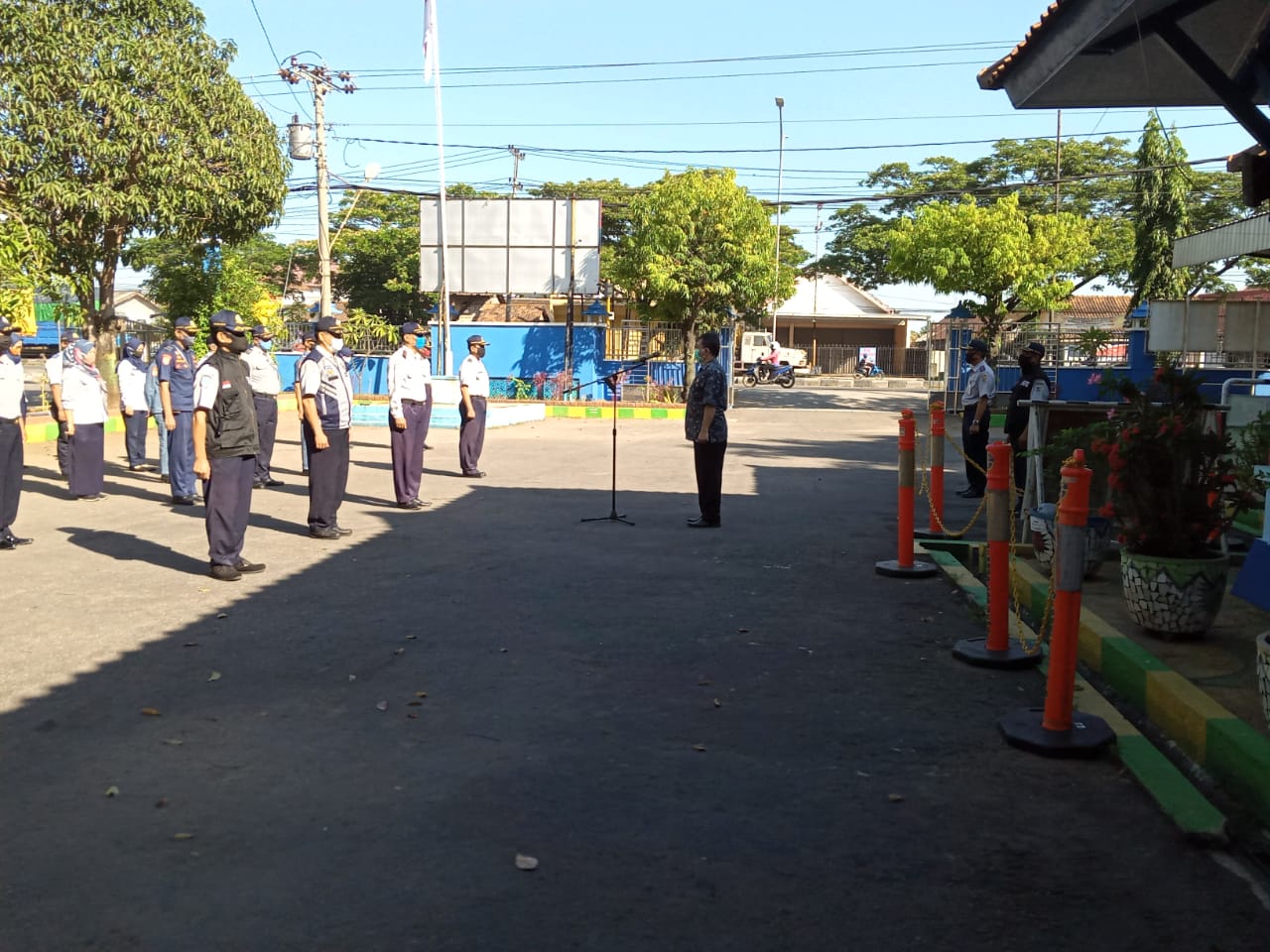 Kepala dinas Perhubungan Kab. Demak Drs. Dwi Heru Asianto memimpin langsung apel dalam untuk memutus mata rantai penularan Covid-19 di Kab. Demak .