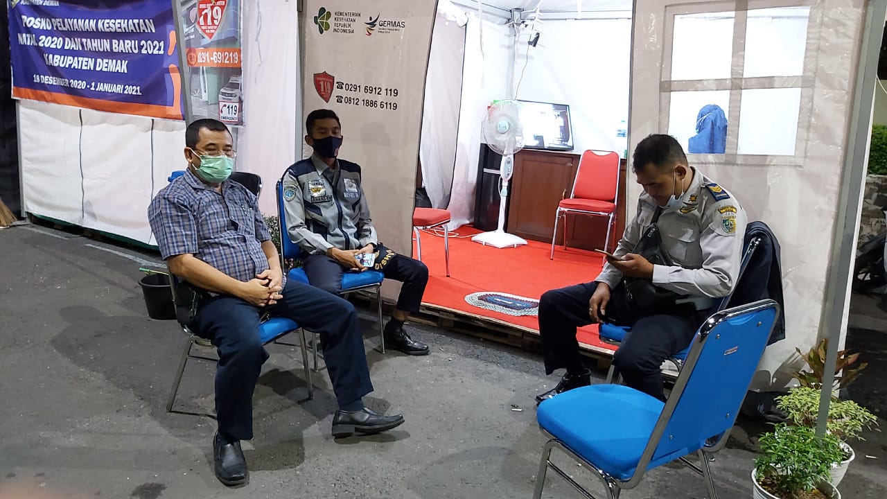 Personil Dinhub Demak melaksnakan tugas tambahan yakni pengamanan posko di terminal demak Untuk itu para petugas yang terploting dalam pengamanan posko terpadu diminta meningkatkan kewaspdaan.