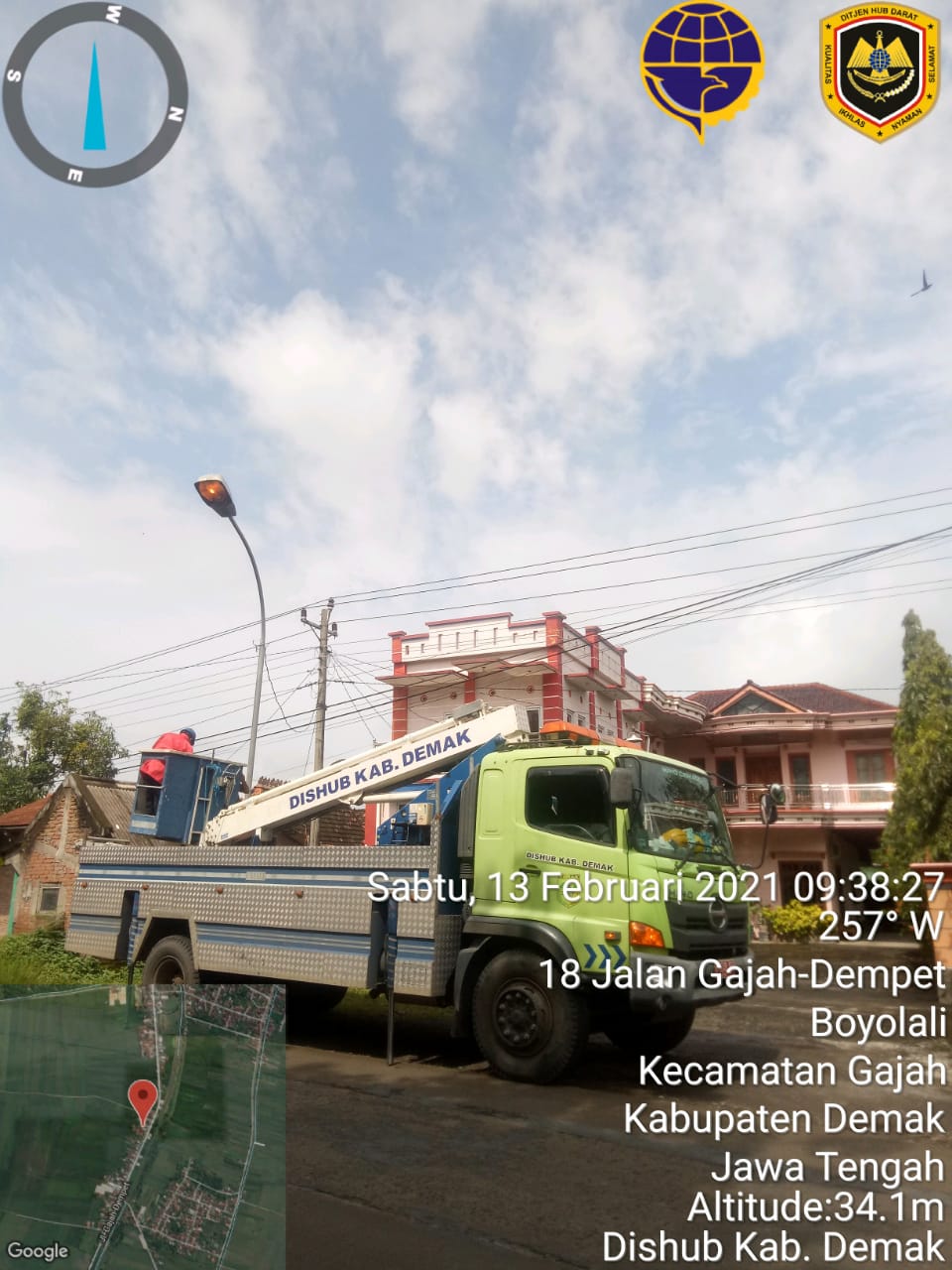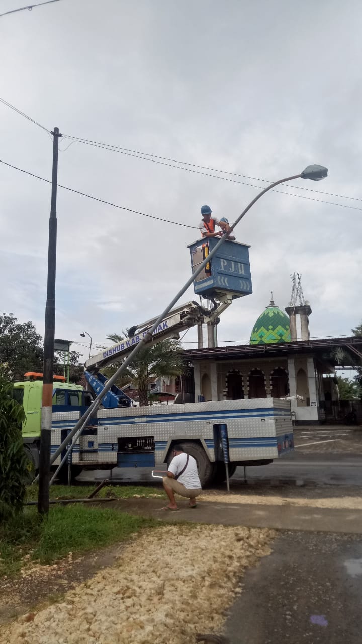 Dinas Perhubungan Kabupaten Demak melakukan upaya perbaikan lampu Penerangan Jalan Umum (PJU) di beberapa lokasi terpasangnya lampu Penerangan Jalan Umum (PJU) yang mengalami kerusakan.