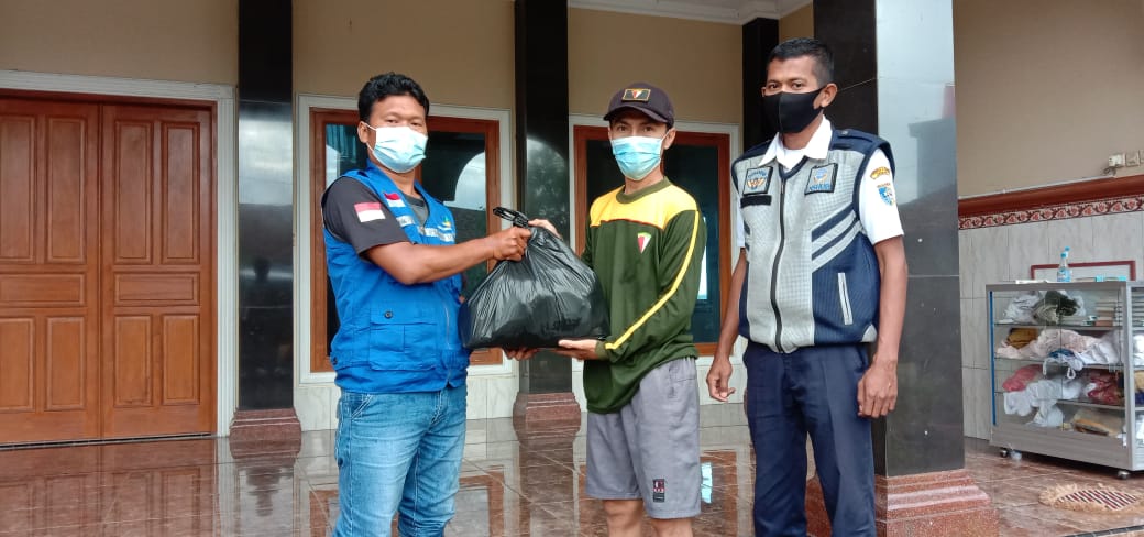 Personil Dinas Perhubungan Kab. Demak membantu menyalurkan bantuan paket makanan untuk warga di Desa Tanjung Kecamatan Karanganyar Demak yang terdampak banjir, Selasa (9/2/2021).
