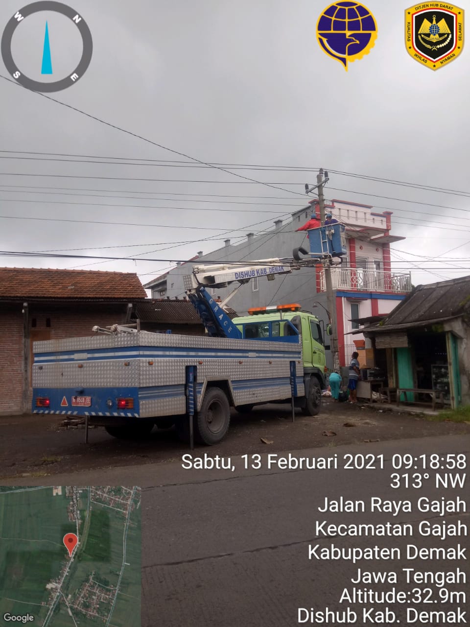 Dinas Perhubungan Kabupaten Demak melakukan upaya perbaikan lampu Penerangan Jalan Umum (PJU) di beberapa lokasi terpasangnya lampu Penerangan Jalan Umum (PJU) yang mengalami kerusakan. (16/2/2021)