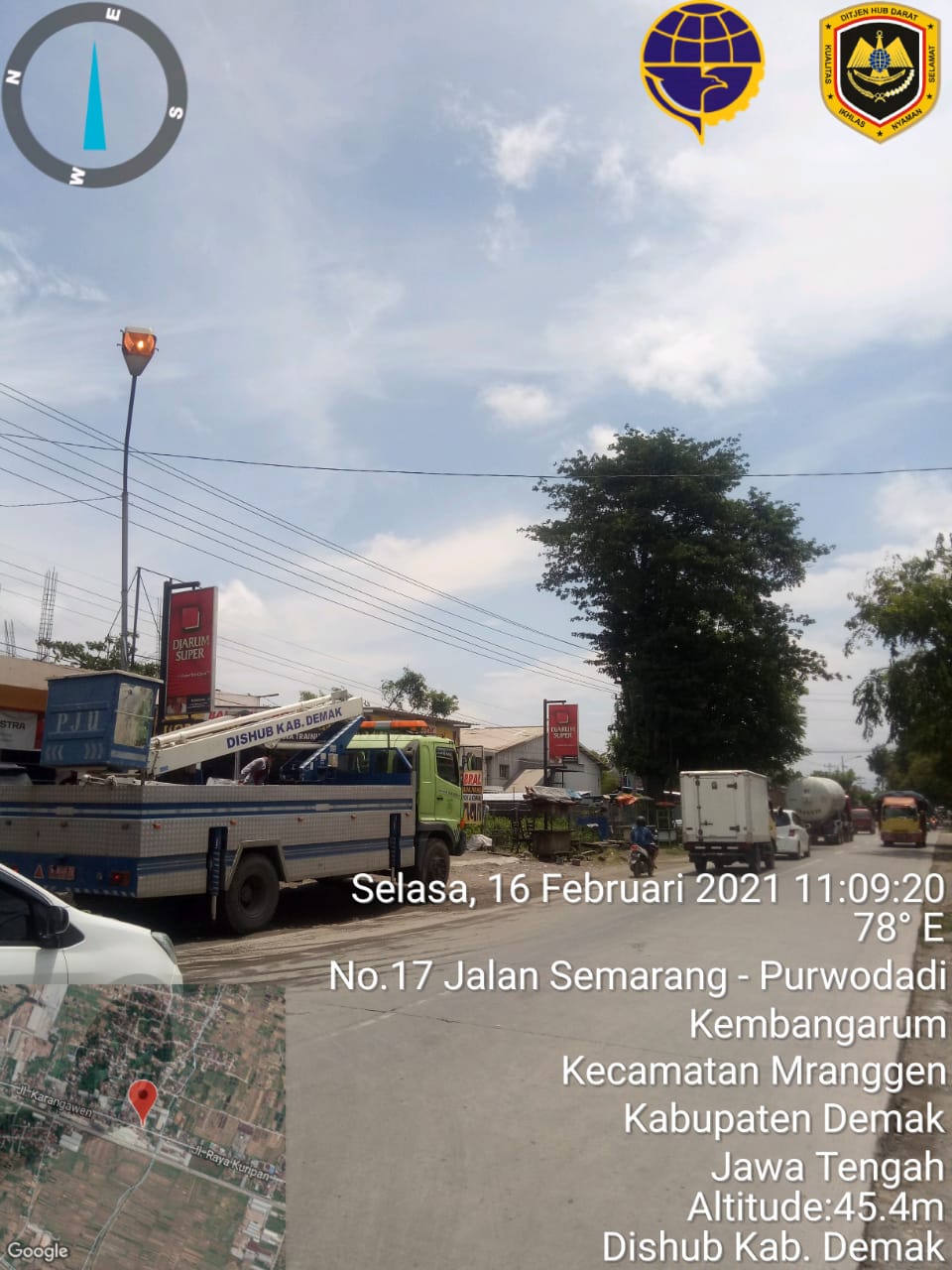 Untuk membuat Jalan Wilayah Demak lebih terang saat malam hari, Dinas Perhubungan (Dishub) melakukan perbaikan lampu penerangan jalan umum (PJU) di Kec. Mranggen dan Kec. Demak yang mengalami kerusakan setelah mendapati adanya laporan daerah tersebut penerangan jalan umum (PJU) padam.