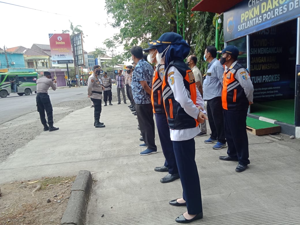 Personel Dishub Demak melaksanakan operasi penyekatan PPKM level 4 di Kabupaten Demak, Jawa Tengah, Minggu  1/8/ 2021. Dishub Demak secara berkala melakukan operasi penyekatan di sejumlah titik jalan protokol dan pemeriksaan kelengkapan syarat melintas luar kota sesuai aturan PPKM Level 4  Jawa-Bali guna menekan lonjakan kasus COVID-19.