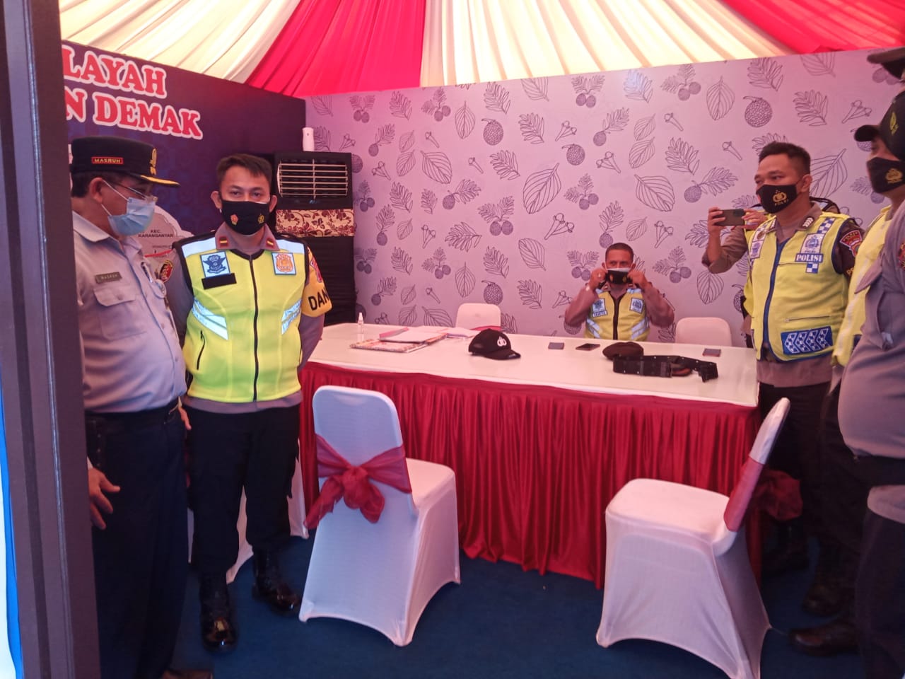 Satgas Covid-19 Kabupaten Demak yang tergabung dalam Tim Yustisi Penegakan Protokol Kesehatan Pencegahan Covid-19 Kabupaten Demak Dishub bersama POLRES DEMAK, Satpol PP dan , Kodim dan pada Selasa (01/03) melaksanakan kegiatan pembagian masker kepada masyarakat di area pertigaan bogorame sekaligus melakukan sosialisasi untuk selalu tertib menerapkan protokol kesehatan pencegahan Covid-19 di Kabupaten Demak.